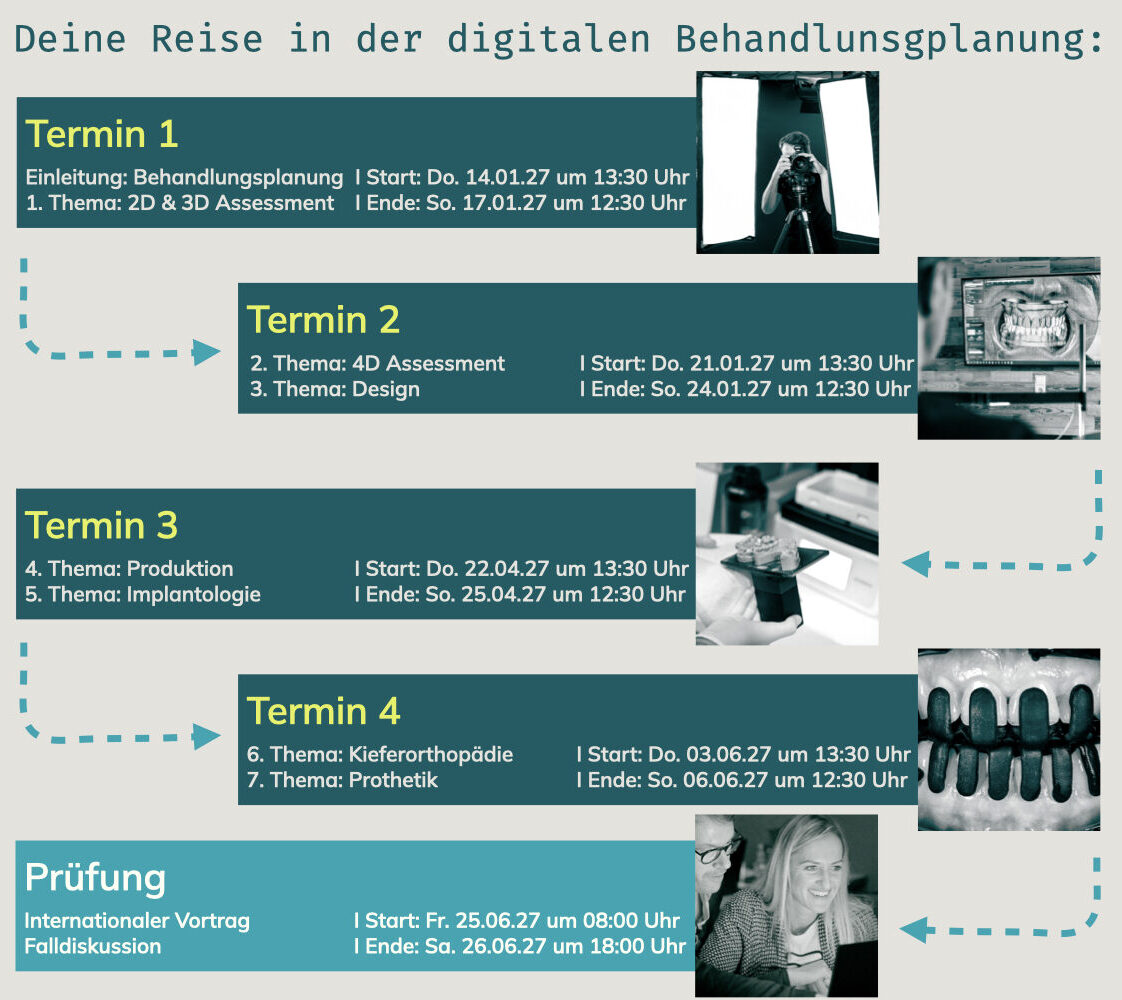 Das Curriculum The Art of Digital Dentistry ist didaktisch und inhaltlich klar strukturiert: Schritt für Schritt führt es durch alle relevanten Aspekte des digitalen Arbeitens – von der Datenerfassung bis zur klinischen Umsetzung.
